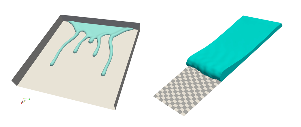 Fig. 1 shows two examples of simulations of flowing films, produced during this PhD research: