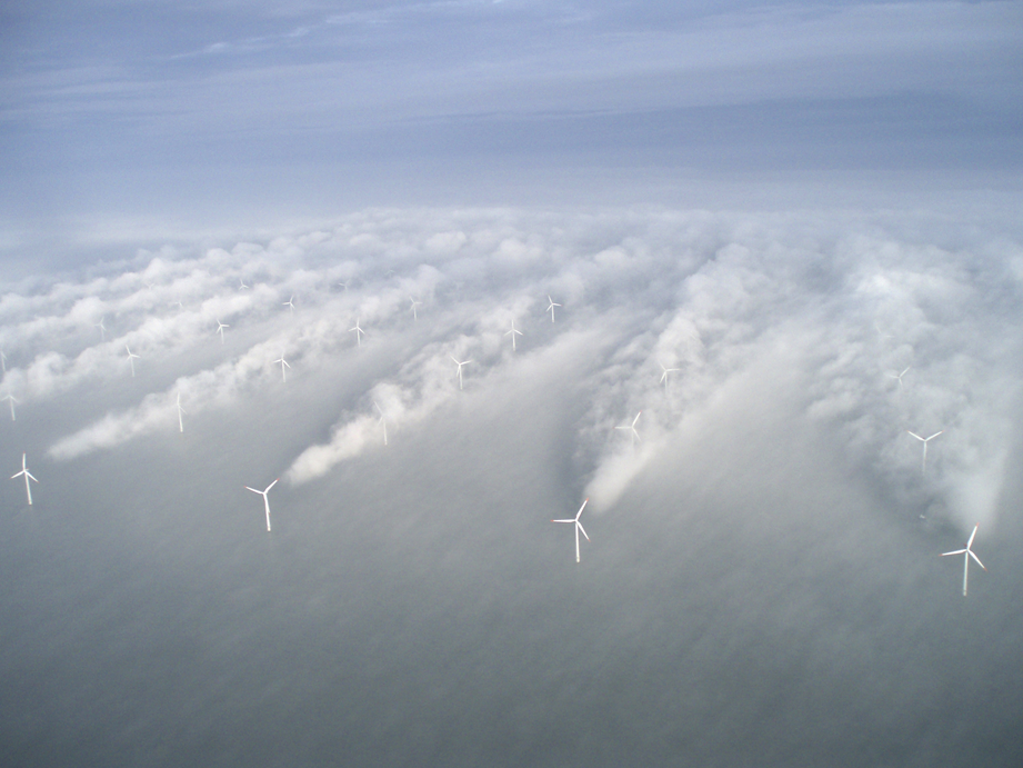 When wind turbines are assembled on a wind farm, under certain wind conditions they may interact with each other through what is known as the wake effect. When a wind turbine captures the kinetic energy contained in the wind, due to the conservation of energy, the wind flow downstream experiences a decrease in speed and an increase in turbulence. As a result, wind turbines located in this wake see their electricity production fall significantly, while also undergoing increased mechanical fatigue. These wake effects (Figure 1) cause annual production losses of as much as 20%.