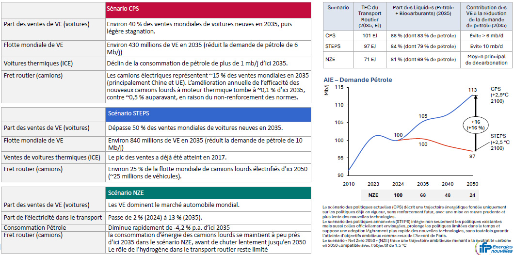 Les scénarios du WEO 2025 pour le véhicule électrique