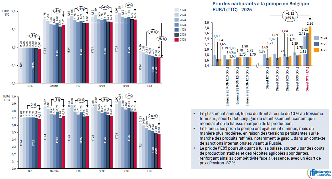 - À l’opposé, les véhicules électriques (VE) poursuivent leur ascension avec une progression remarquable de +26 % en Europe au troisième trimestre 2025, un taux légèrement supérieur à celui enregistré en Chine (+24 %).