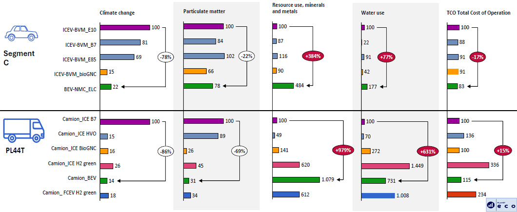 L’ACV permet de comparer l’impact environnemental des différentes technologies sur l’ensemble de leur cycle de vie de la fabrication à la fin de vie. Elle prend en compte l’ensemble des étapes du cycle de vie de la production des matériaux et de la fabrication du véhicule jusqu’à son utilisation et sa fin de vie. L’ACV permet de comparer de manière objective les technologies selon plusieurs indicateurs environnementaux, tels que les émissions de gaz à effet de serre, la consommation d’énergie, les impacts sur la qualité de l’air, l’eau ou les ressources naturelles.